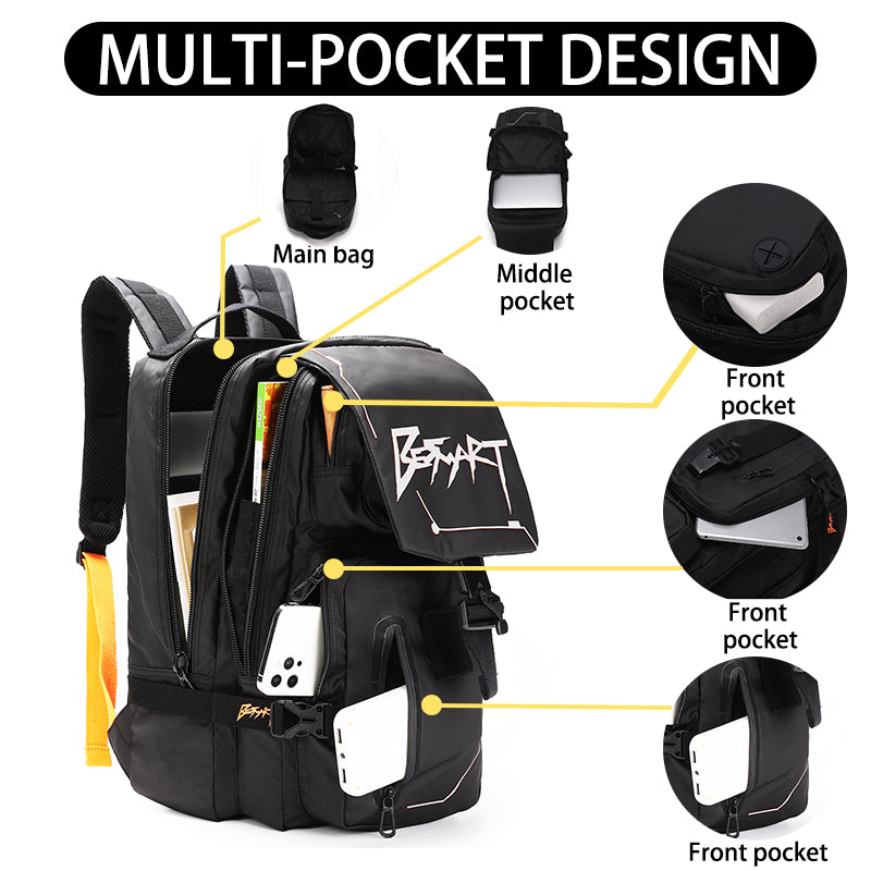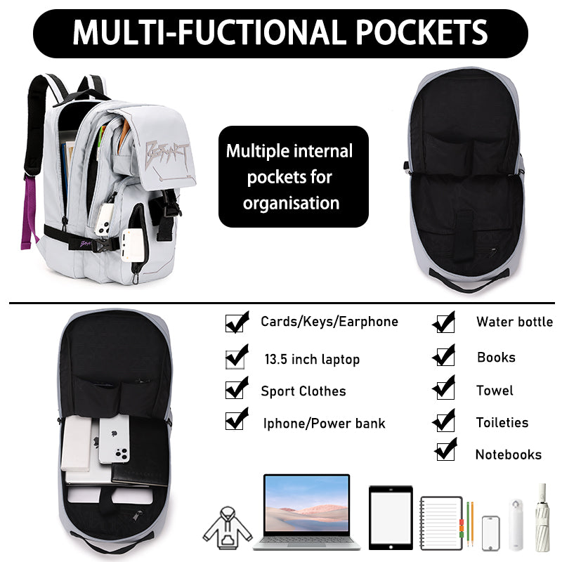 Large backpack with multiple pockets 5-layer ultra-wide design, honeycomb structure conforms to ergonomics to prevent stuffiness, adjustable buckle and magnetic buckle, designed to fit 13.5-inch computer