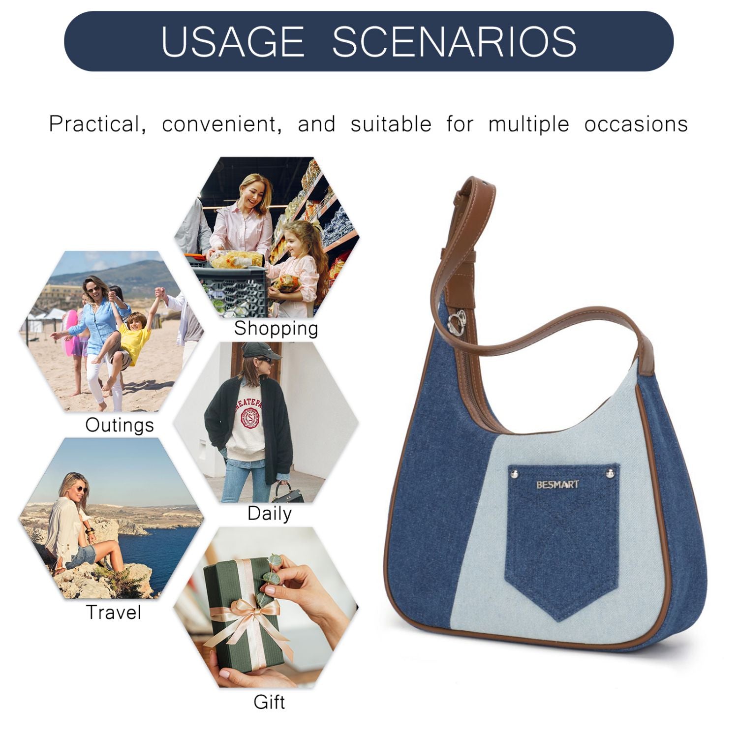 Made of soft and wear-resistant denim fabric, the shoulder straps and bag edges are made of thickened and soft PU material