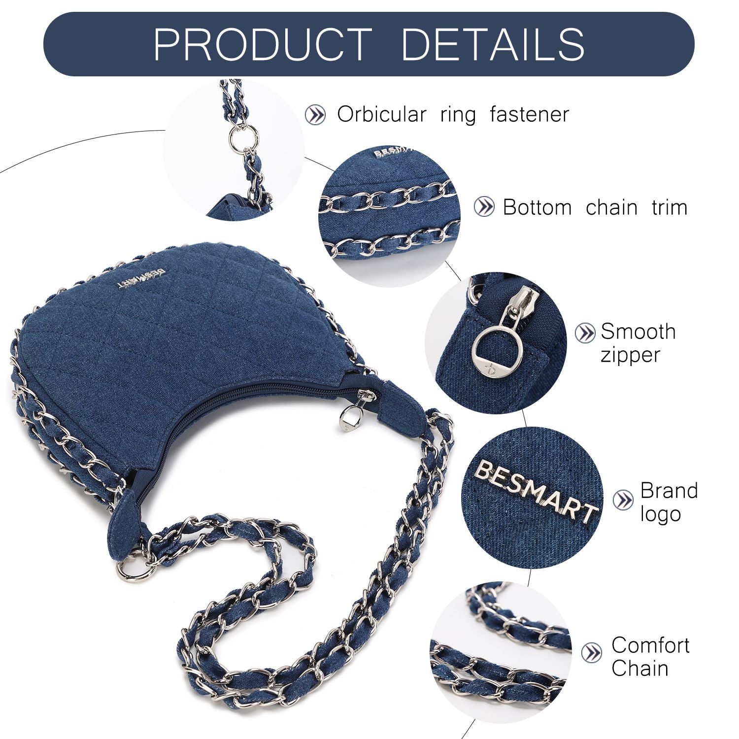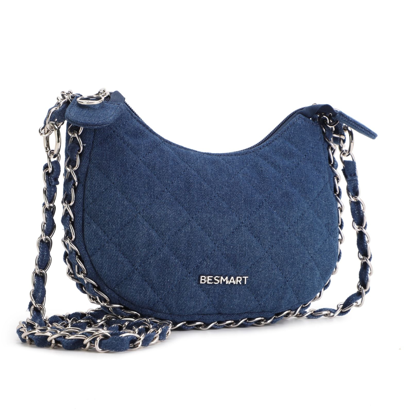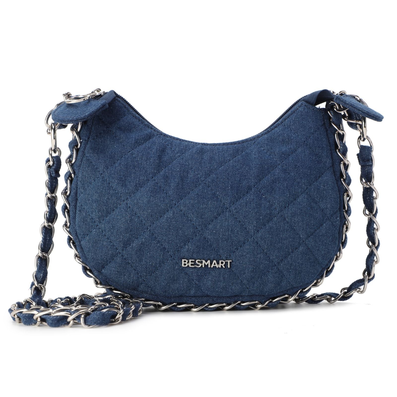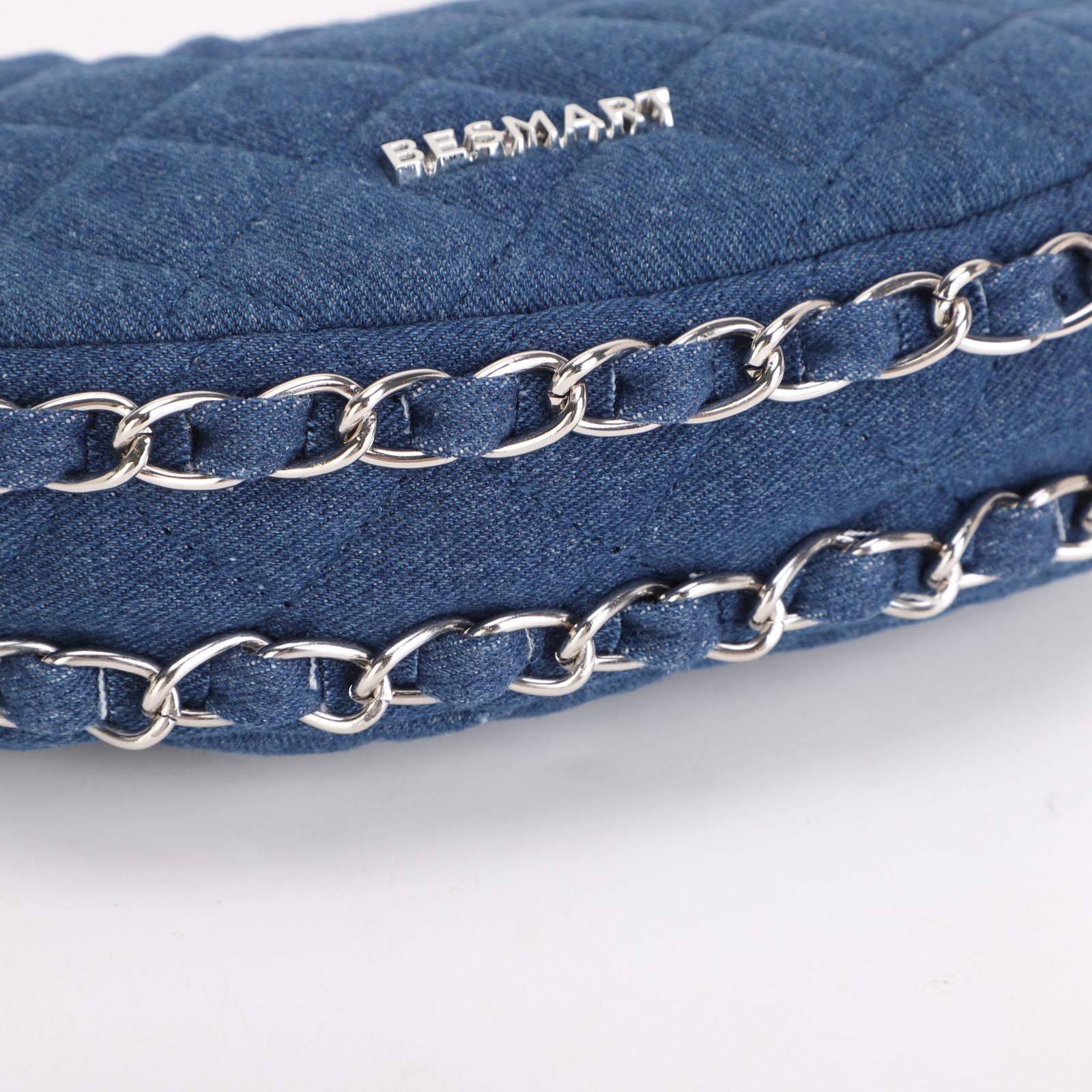 BE SMART Heavy Metal Chain Denim Crescent Bag