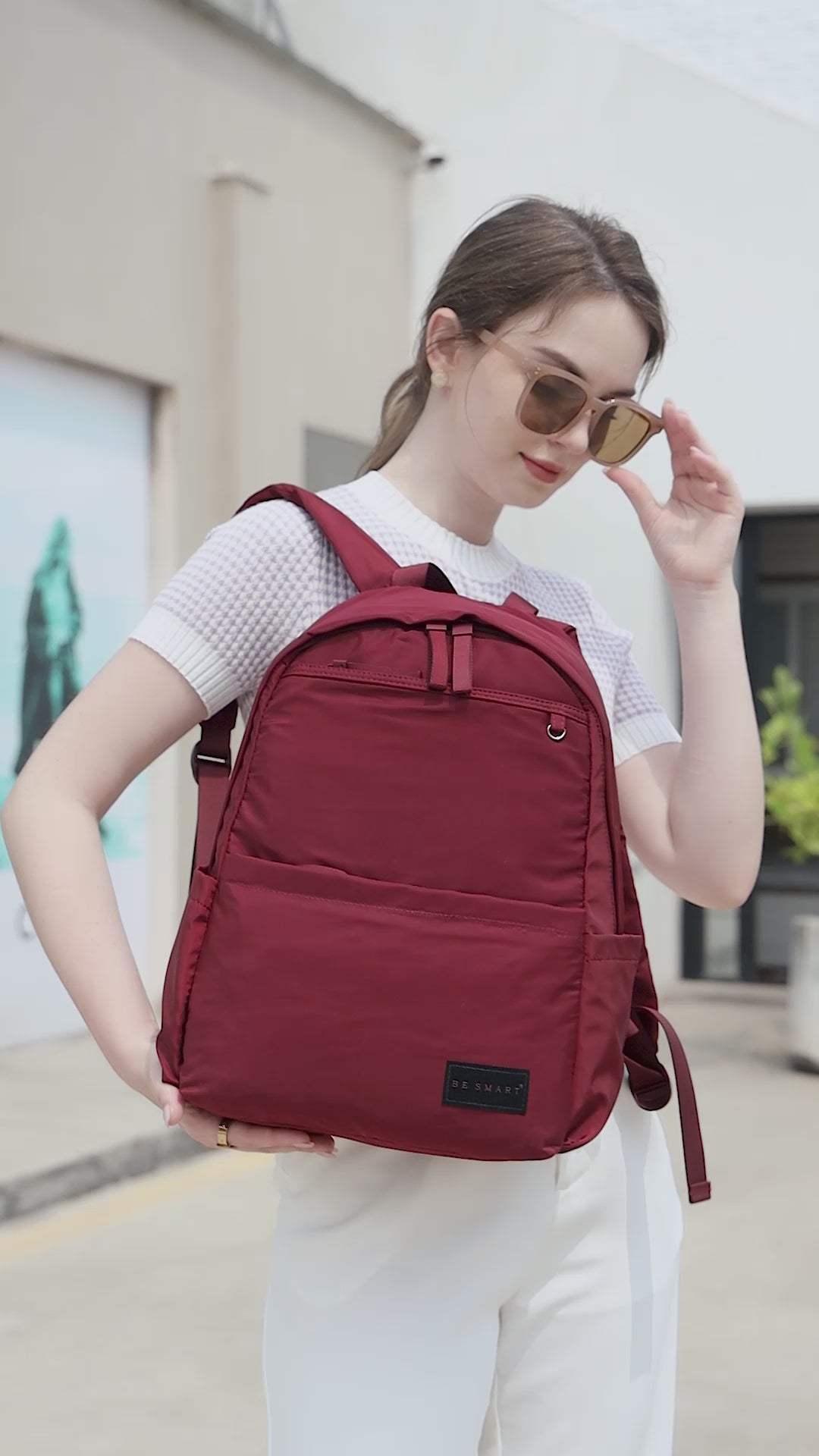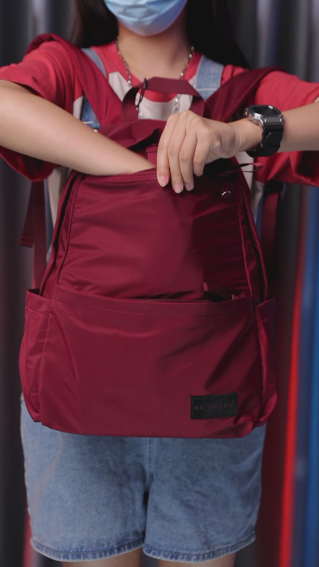 BE SMART Red Lightweight Backpack For Women